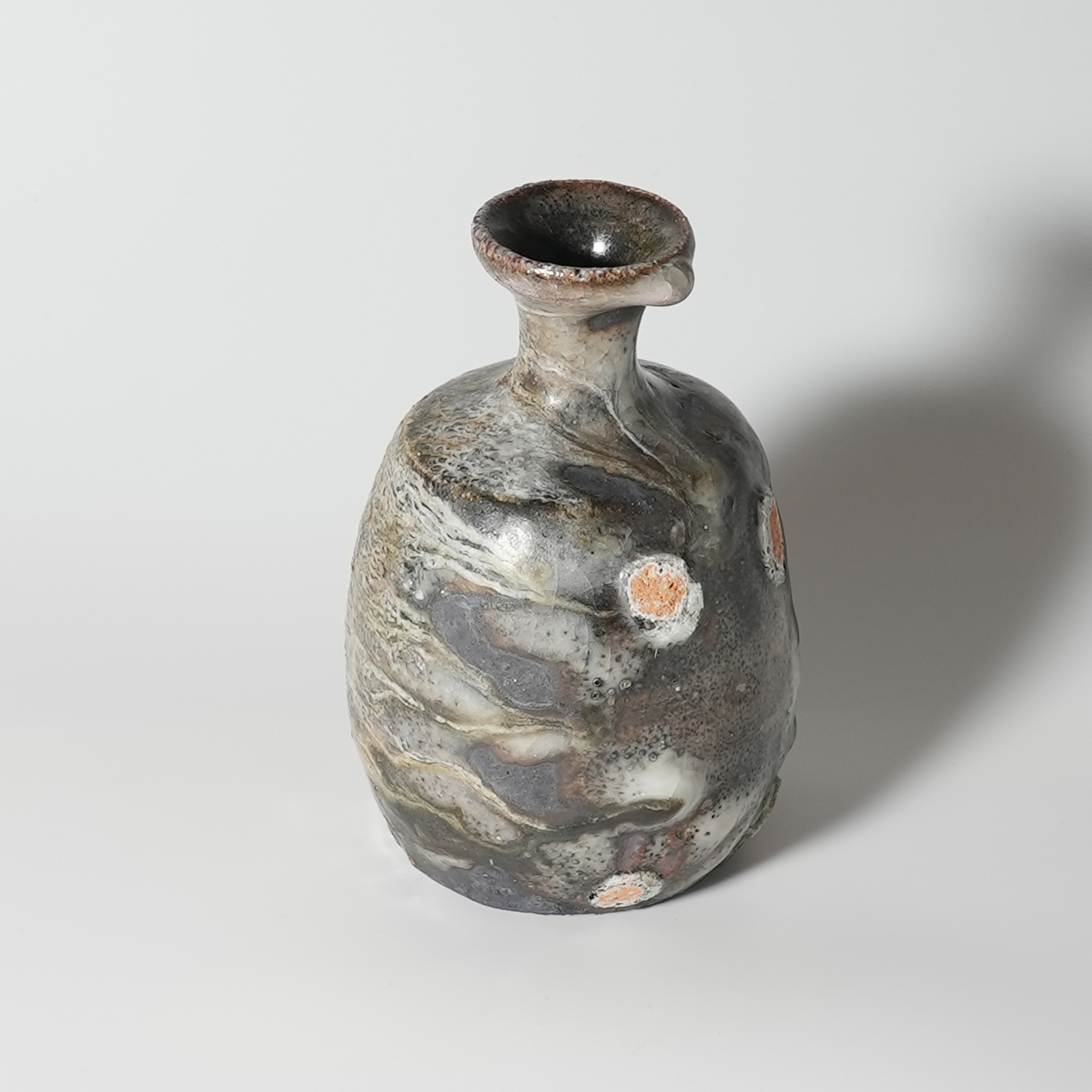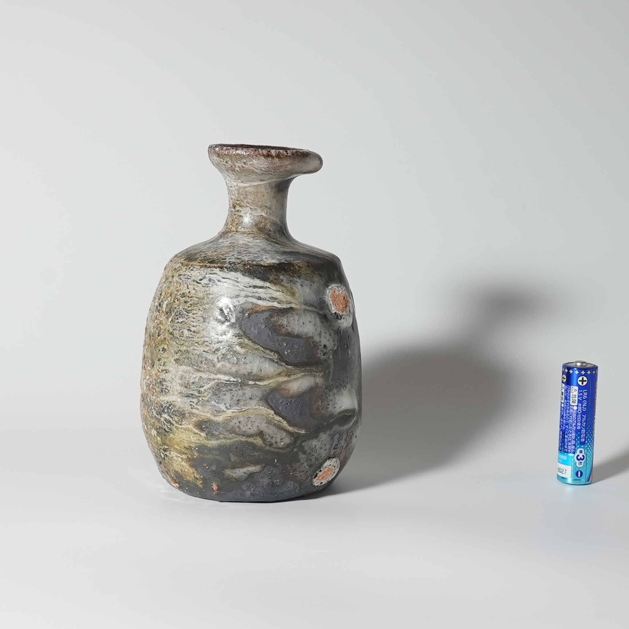 Oni Shino tokkuri sake bottle. Takashi Baba, Bizen.