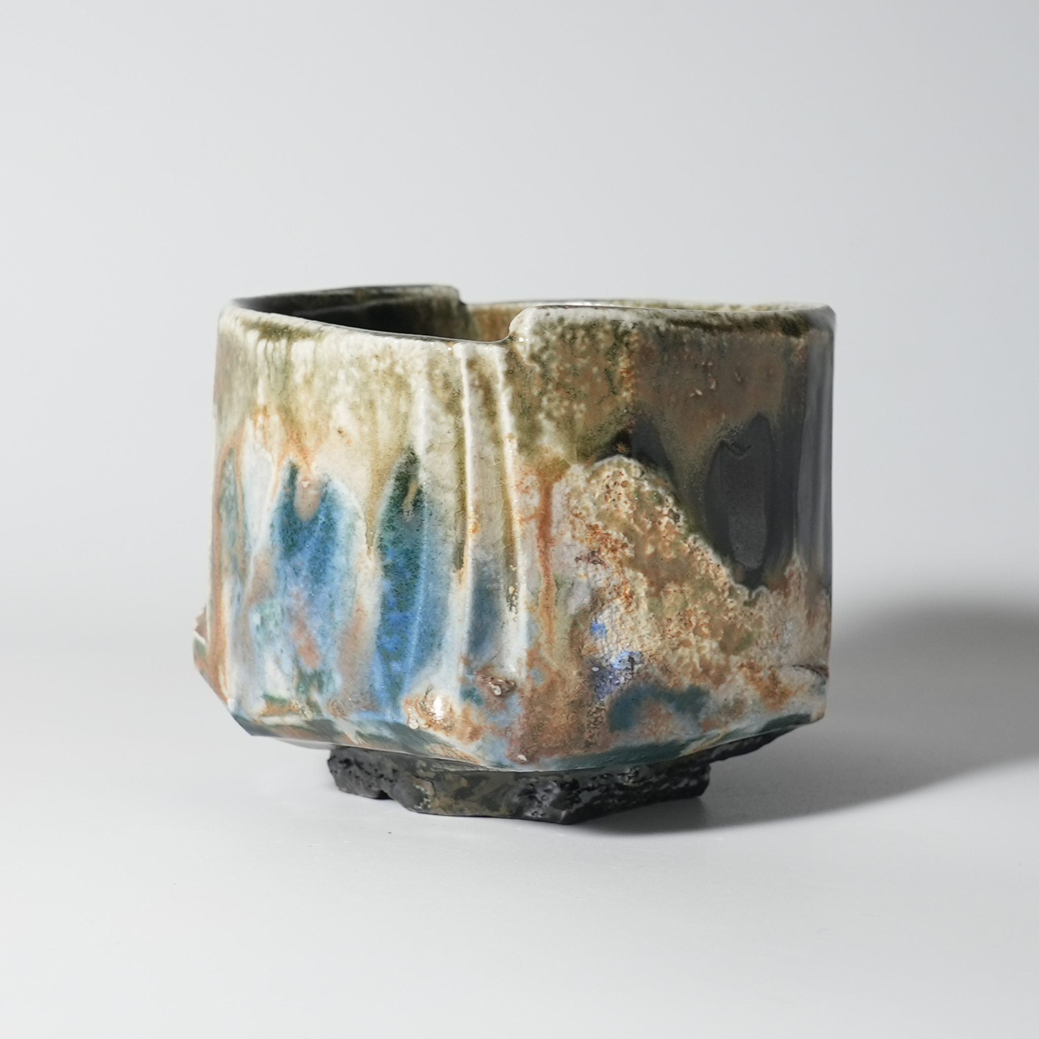 Yohen Blue Matcha chawan teabowl. Takashi Baba, Bizen.