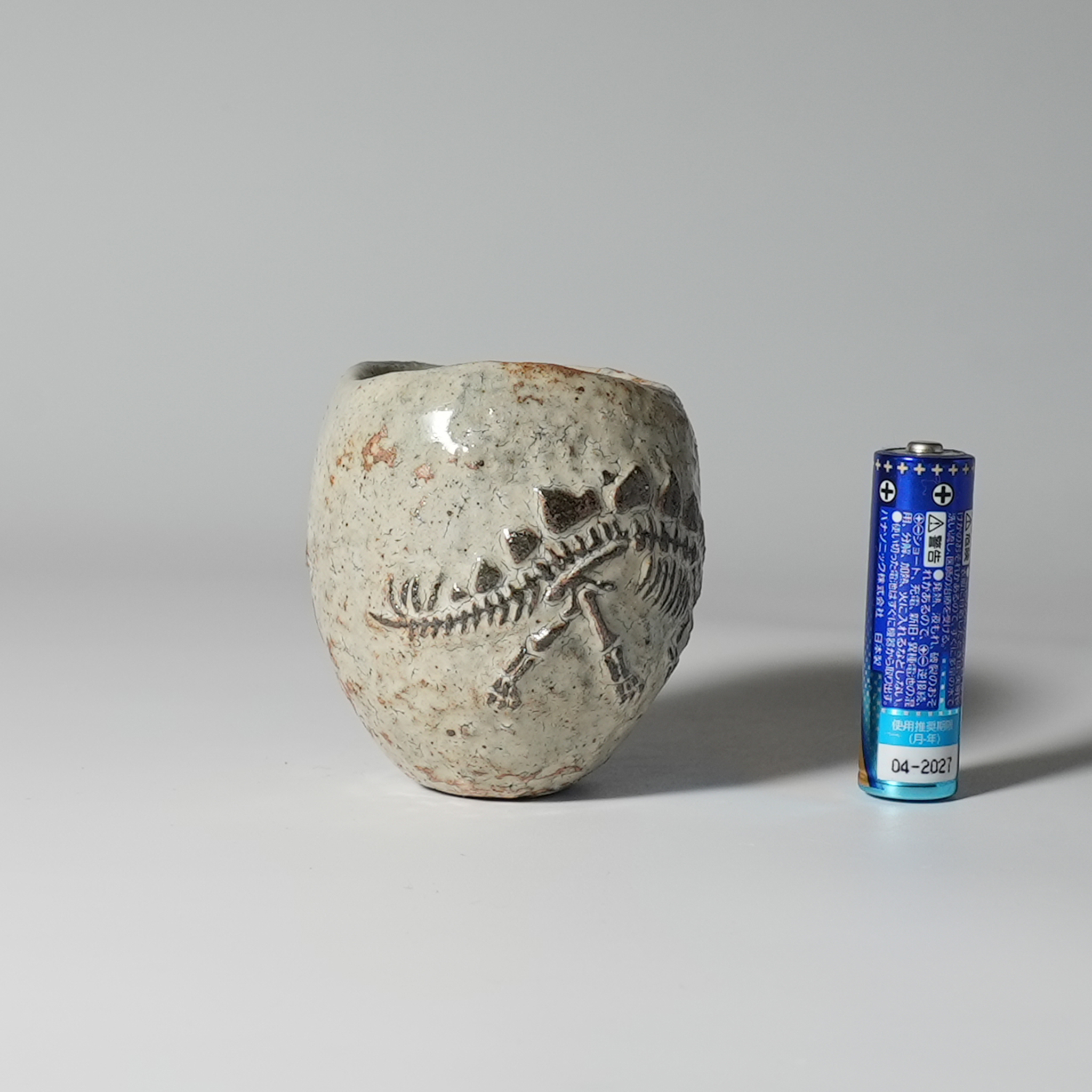 Kohiki dinosaur Skeleton guinomi Sake cup. Atsushi Furumatsu.