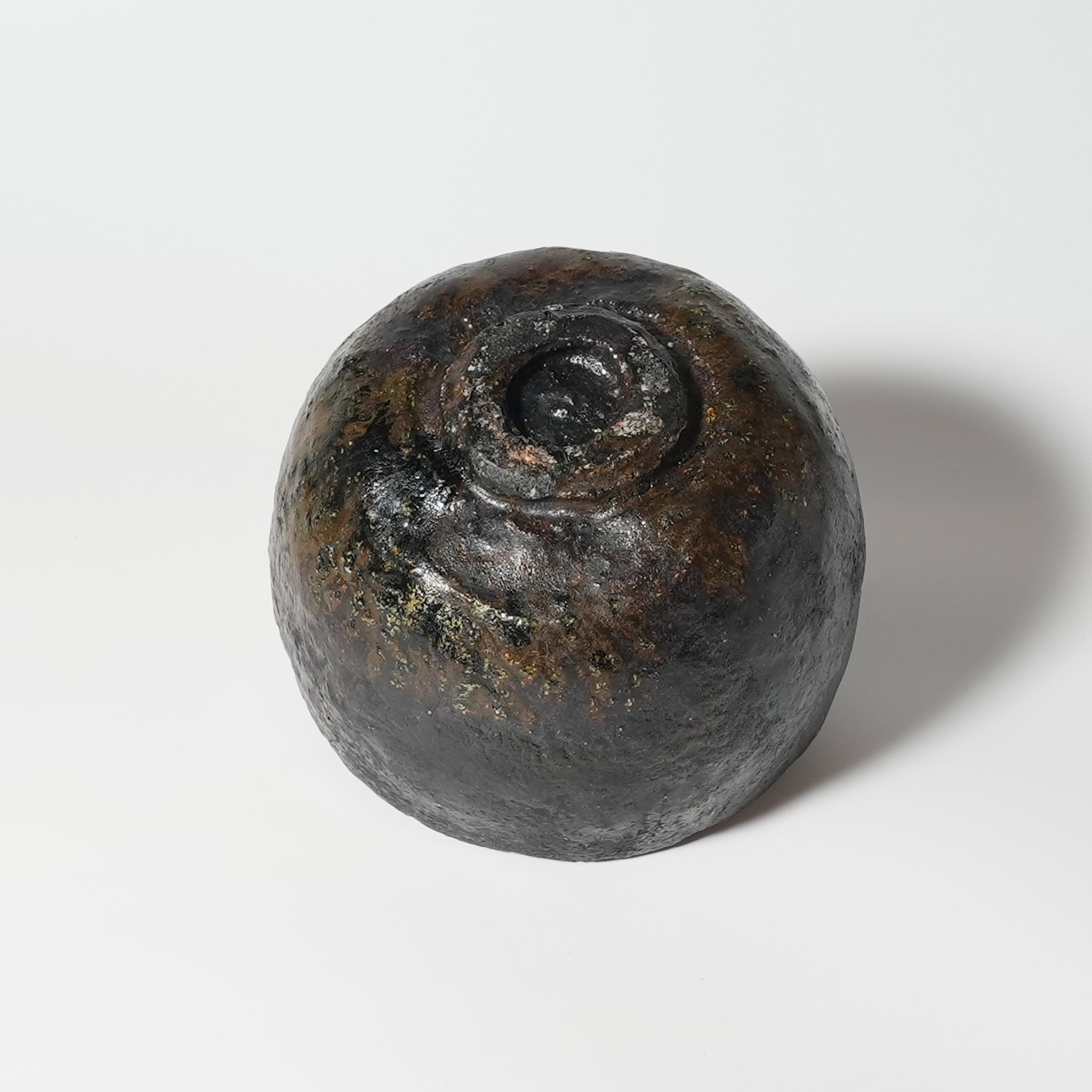 2010: Moved to Awaji island Hogo prefecture. Made under grounded Anagama, and Raku kiln. Started making Kuroraku, Black raku chawan.