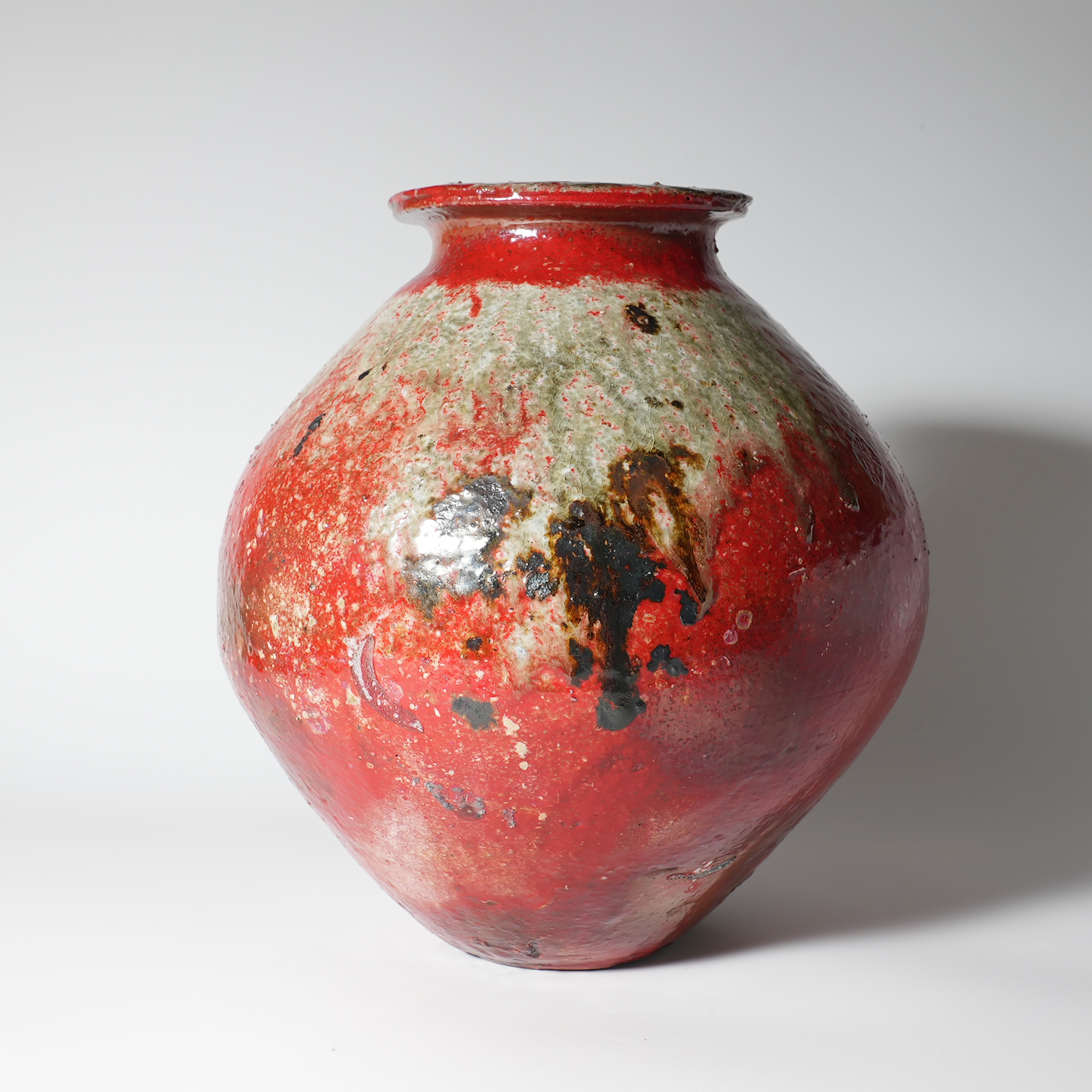 Red Tamba flower vase pot, Masafumi Onishi.